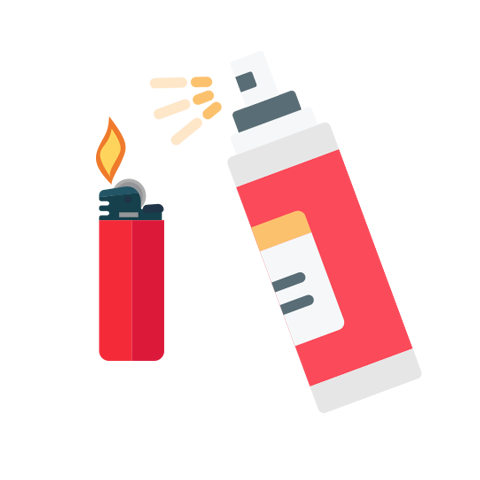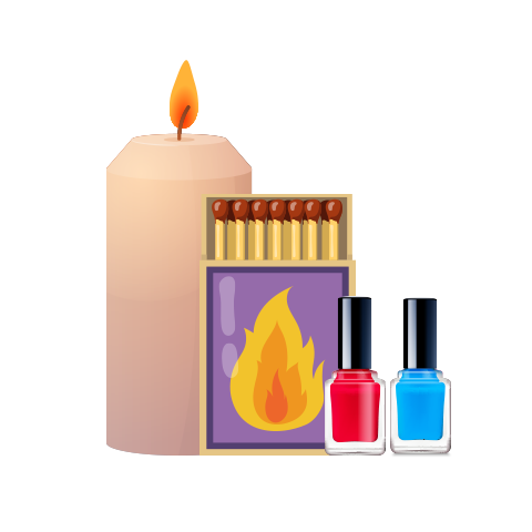 화기성 제품 메탄올, 아세톤, 매니큐어, 초, 성냥 등 모든 화기성 제품 -